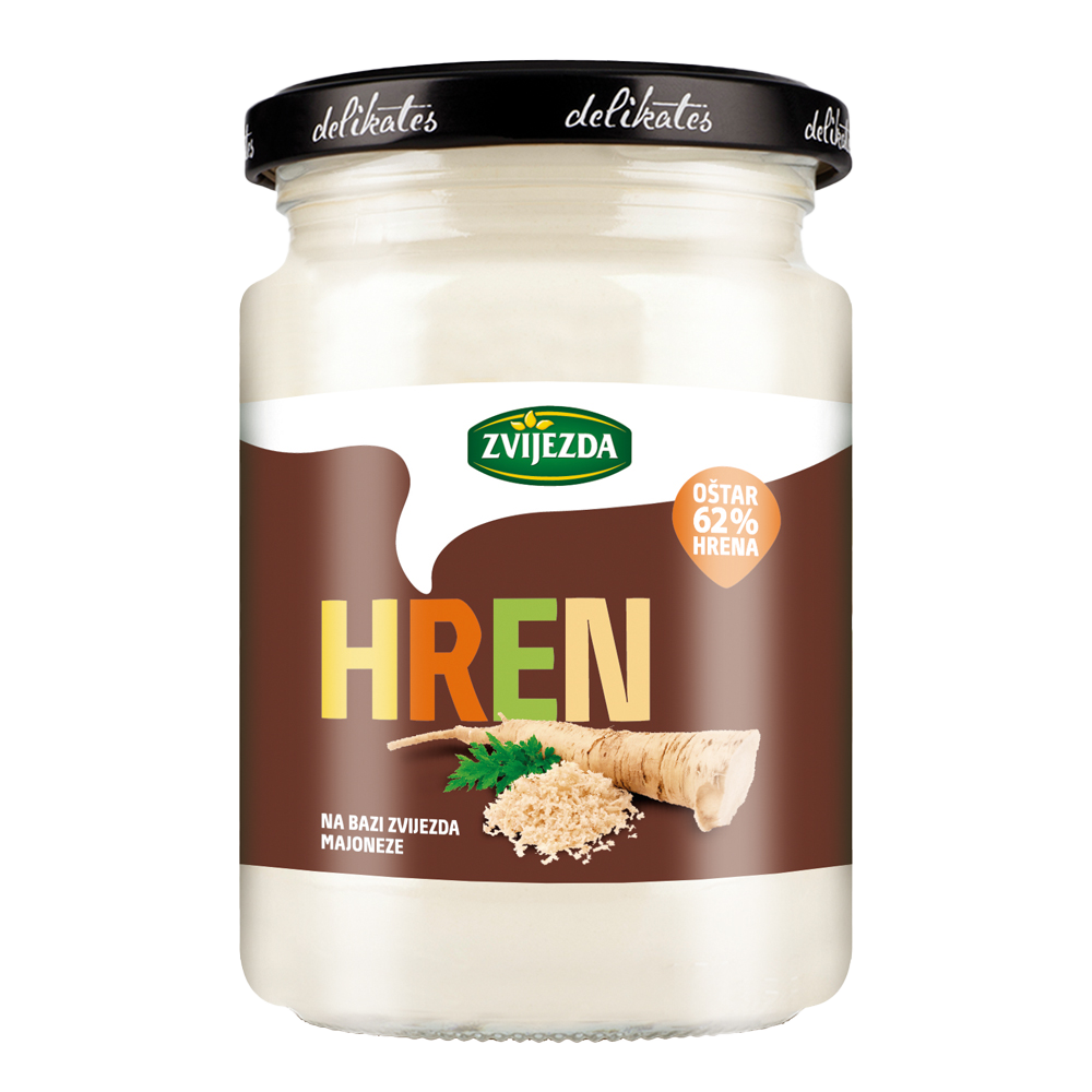 Med 69 % peberrod og tilsat den traditionelle opskrift på Zvijezda-mayonnaise, grøntsager og krydderier vil smagen af Zvijezda-peberrod begejstre fans af krydret smag og dem, der foretrækker en intens peberrodssmag, samtidig med at den giver retterne fyldig smag og aroma. Den er den perfekte tilbehør til kogt kød, æg, skinke og kan også bruges som base for spreads, saucer og salater.